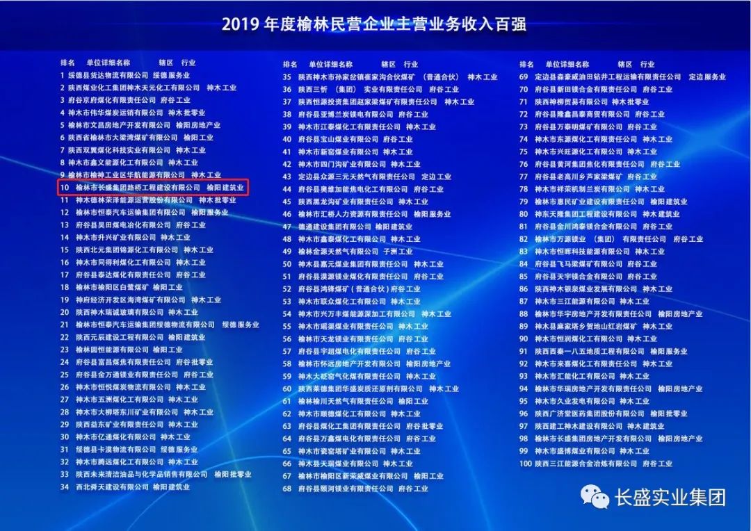 長(zhǎng)盛路橋公司入榜榆林市建筑企業(yè)主營(yíng)業(yè)務(wù)收入四十強(qiáng)和民營(yíng)企業(yè)主營(yíng)業(yè)務(wù)收入百?gòu)?qiáng)
