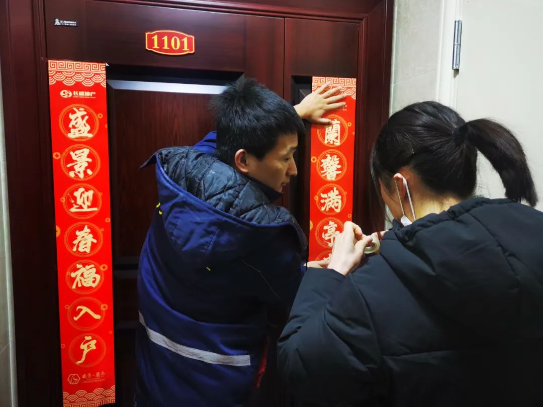 俗話說,無聯(lián)不成春,為了讓小區(qū)業(yè)主未入住的"新"房,也增添上濃濃的新春氣息。盛景蘭亭物業(yè)服務(wù)中心客服管家,主動聯(lián)系未裝修業(yè)戶幫忙貼春聯(lián),希望通過貼春聯(lián)活動,彌補在外地不能回家過春節(jié)的遺憾。
