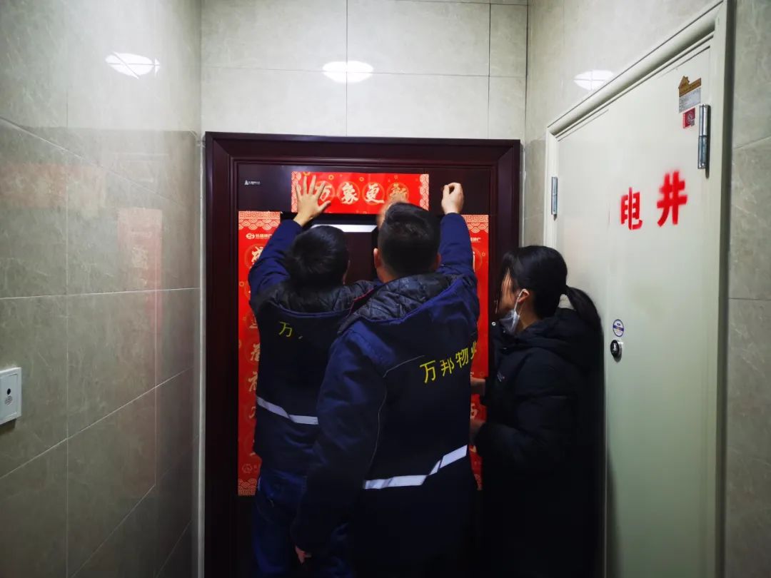 貼春聯(lián)接福氣|萬邦物業(yè)-盛景蘭亭服務(wù)中心客服管家?guī)臀慈胱糍N春聯(lián)