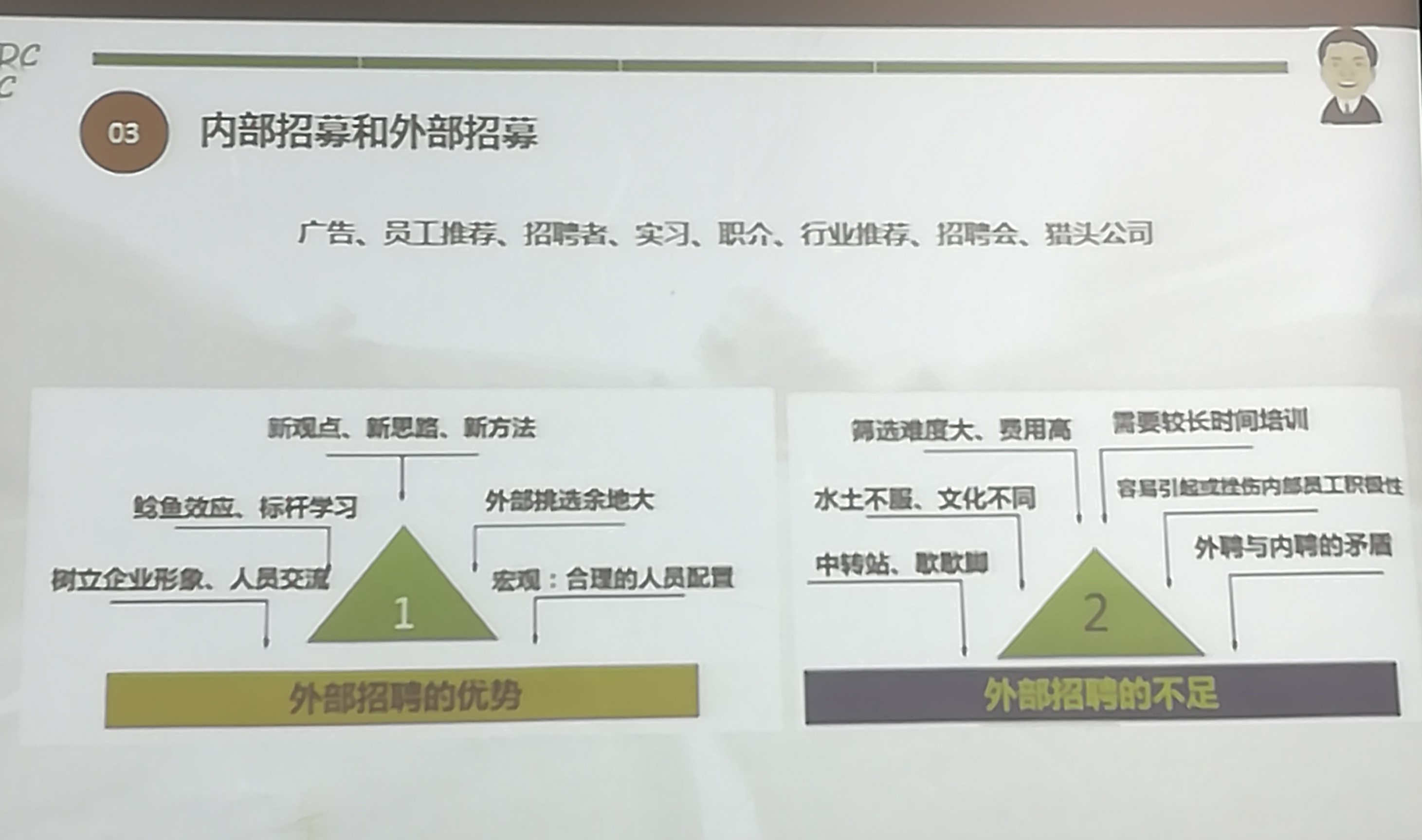 (二)招聘計劃制定,相關(guān)表格和通知書等文字材料準(zhǔn)備,人員招募渠道策略選擇以及內(nèi)部招募和外部招募;