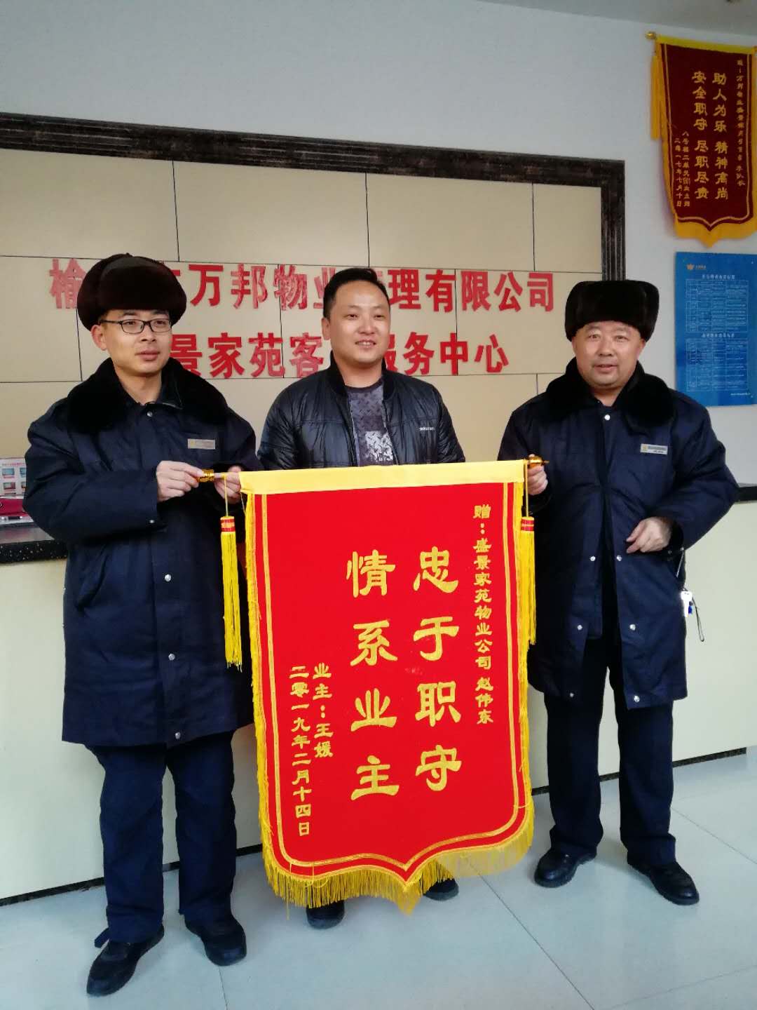 這一舉動感動了業(yè)主,今日業(yè)主親自將錦旗授予我們,大大鼓舞了我們員工的工作熱情。我們必將竭盡全力做好物業(yè)公司的各項(xiàng)工作,情系業(yè)主,服務(wù)業(yè)主。 |