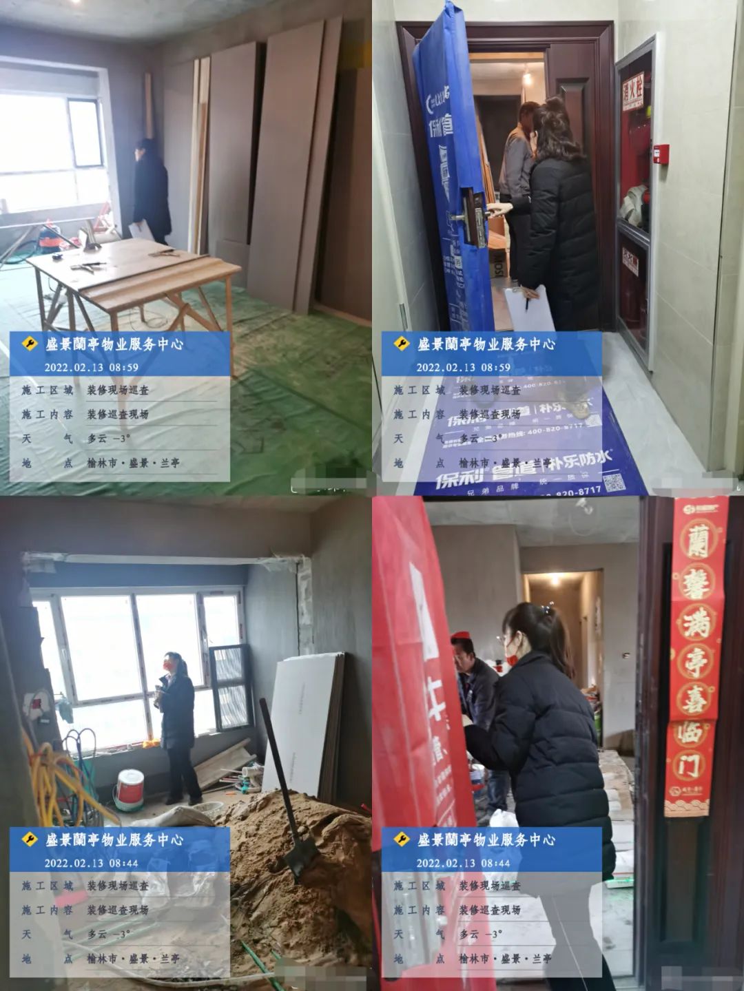 入戶查看業(yè)戶裝修進(jìn)度,檢查是否有違章情況,并將檢查情況詳細(xì)記錄!