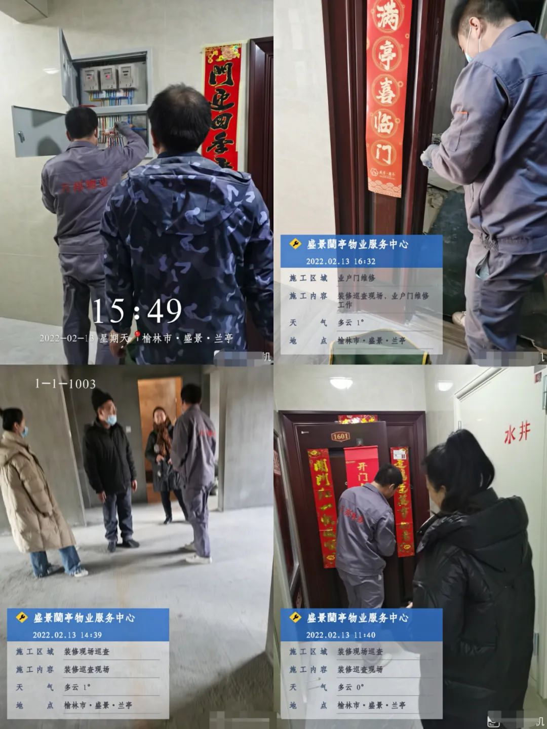二月萬物復(fù)蘇,二月鳥語花香,二月生機(jī)盎然, 這個二月,我們始終以誠相待,用心服務(wù)!在園區(qū)裝修期間,盛景蘭亭服務(wù)中心成立了由工程部、客服部、環(huán)境部、安保部多部門人員組成的裝修特巡隊,集中對樓棟裝修情況進(jìn)行巡查、管控,整個小區(qū)裝修工作井然有序。