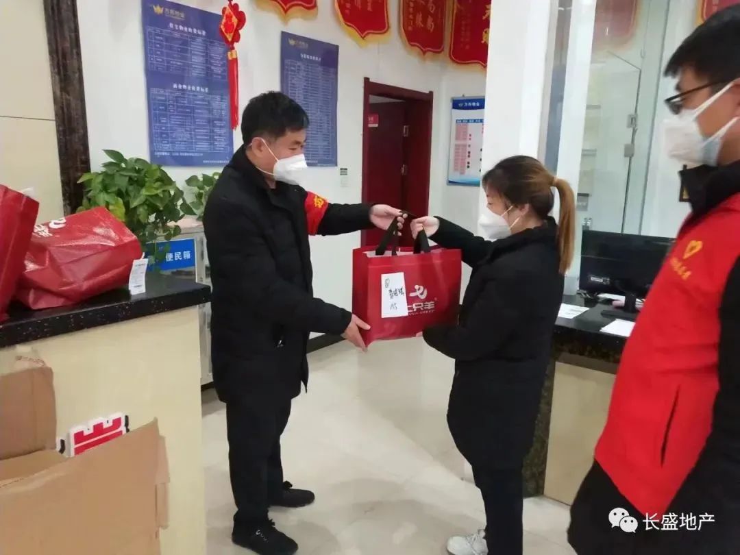 同時(shí),長(zhǎng)盛集團(tuán)始終牽掛在一線的物業(yè)工作人員,為他們送去羊毛衣、羊毛褲等“愛(ài)心包”,感謝他們?nèi)找箞?jiān)守,舍小家為大家,全力配合疫情防控工作而作出的貢獻(xiàn)。