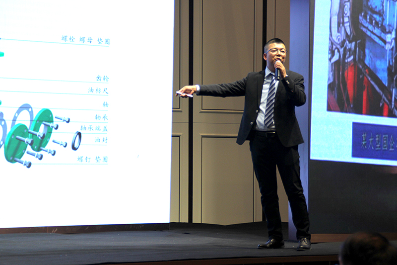 陜西云泰工業(yè)集成科技有限公司的專家團(tuán)隊(duì)成員張炯華作“減速機(jī)免拆漏油污染治理”專題報(bào)告